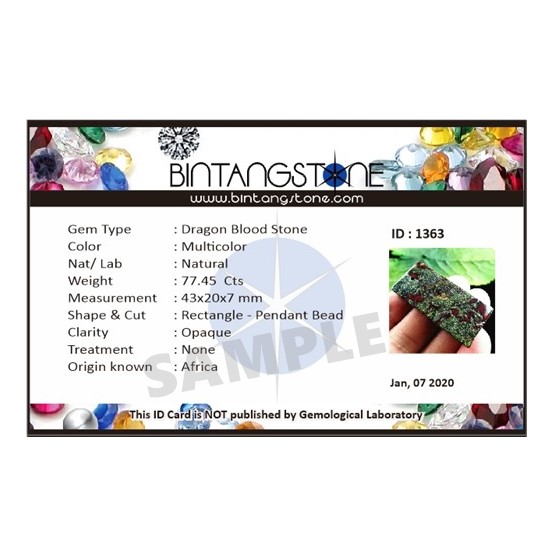 Dragon Bloodstone Africa Natural 77.45 Cts Pendant Blood Red Green Rectangle Liontin Batu Alam Asli Bentuk Kotak
